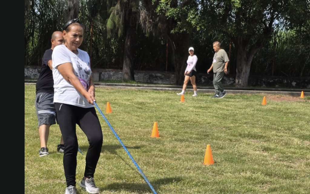 La sesión, realizada bajo la modalidad Hirox, inició con un breve calentamiento y fue dirigida por el entrenador José Miguel Aragón. La dinámica se dividió en distintas estaciones en las que participaron jóvenes, adultos y personas mayores, promoviendo la integración y el gusto por la actividad física.