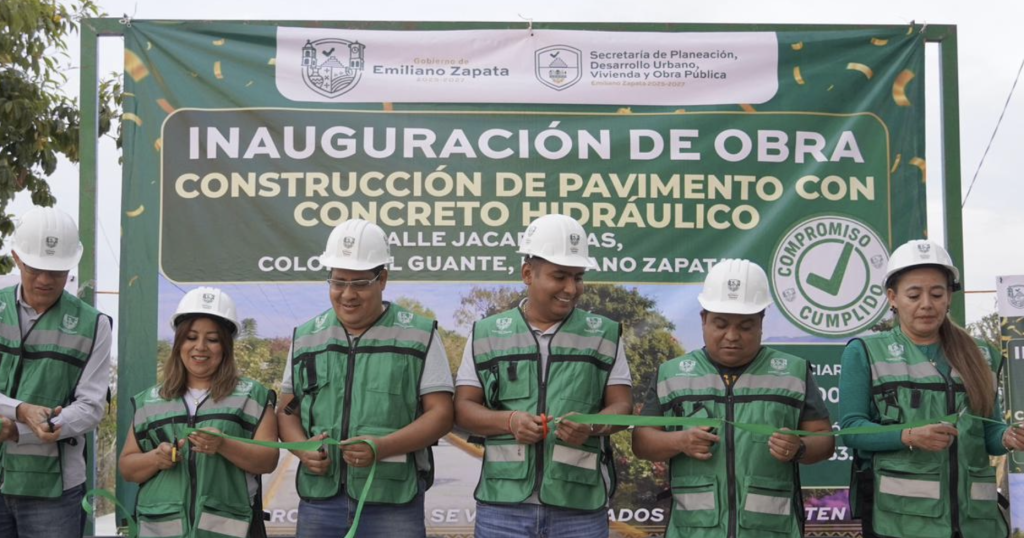 El Ayuntamiento de Emiliano Zapata, encabezado por el presidente municipal Santos Tavarez García, llevó a cabo la inauguración de la obra de construcción de pavimento con concreto hidráulico en la calle Jacarandas, ubicada en la colonia El Guante, como parte de las acciones para fortalecer la infraestructura urbana del municipio.