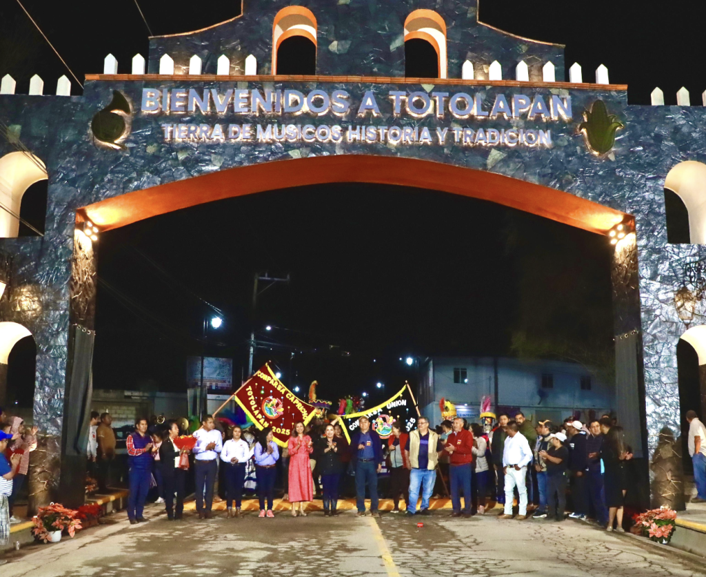 Totolapan, Morelos.– El pasado viernes se llevó a cabo la entrega oficial del nuevo arco de bienvenida a la cabecera municipal de Totolapan, una obra que representa la identidad, la historia y la riqueza cultural del municipio.